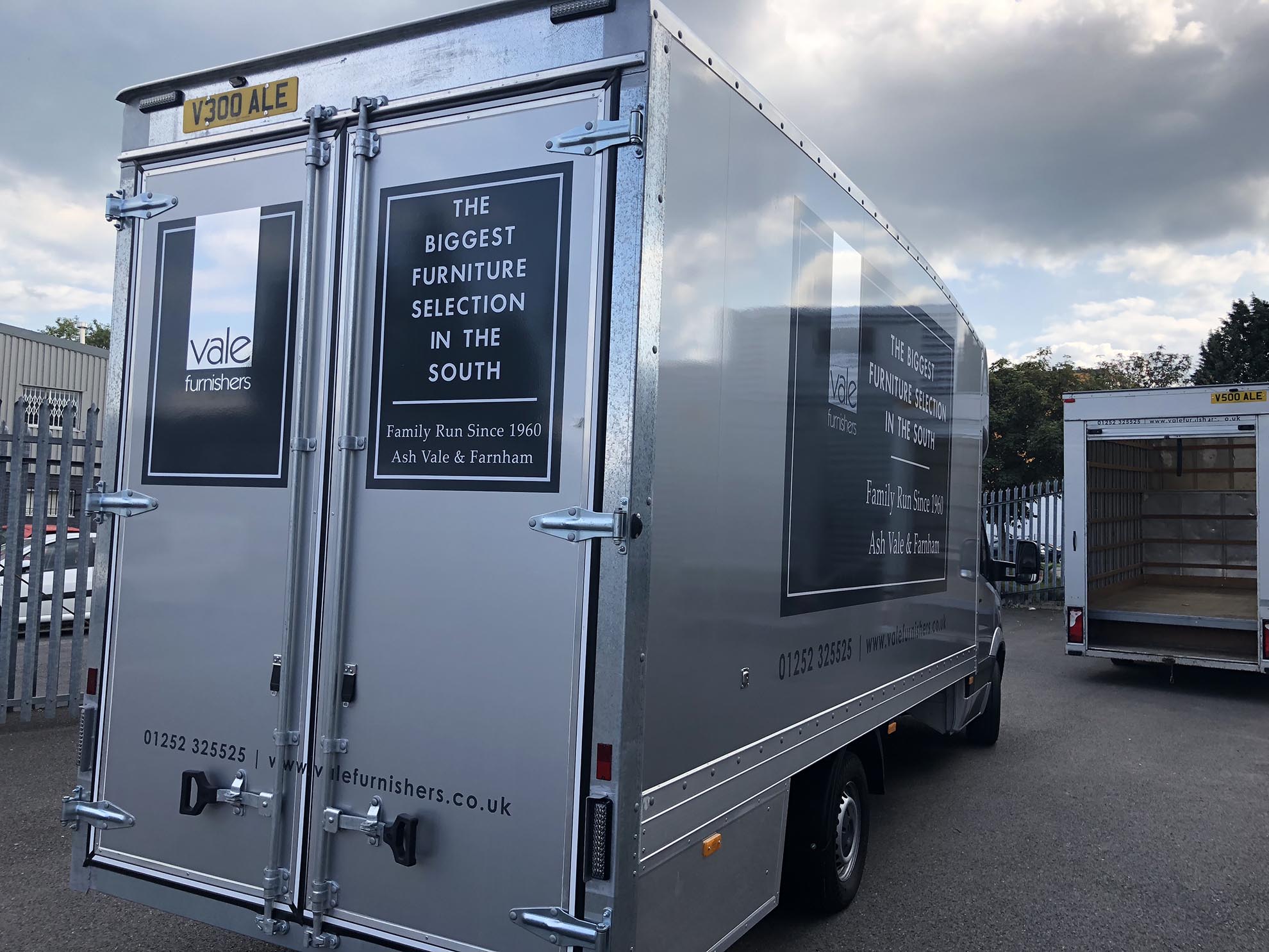 Alongside this, we carried out vehicle livery work on Vale Furnishings’ delivery trucks. The designs were adapted to suit a range of vehicle sizes and layouts, ensuring consistency across the fleet. Using high-quality, durable vinyl, the branding was applied to create a professional and polished look, while also offering practical longevity for daily use. The livery helped transform the delivery vehicles into moving advertisements, reinforcing the brand with every journey.