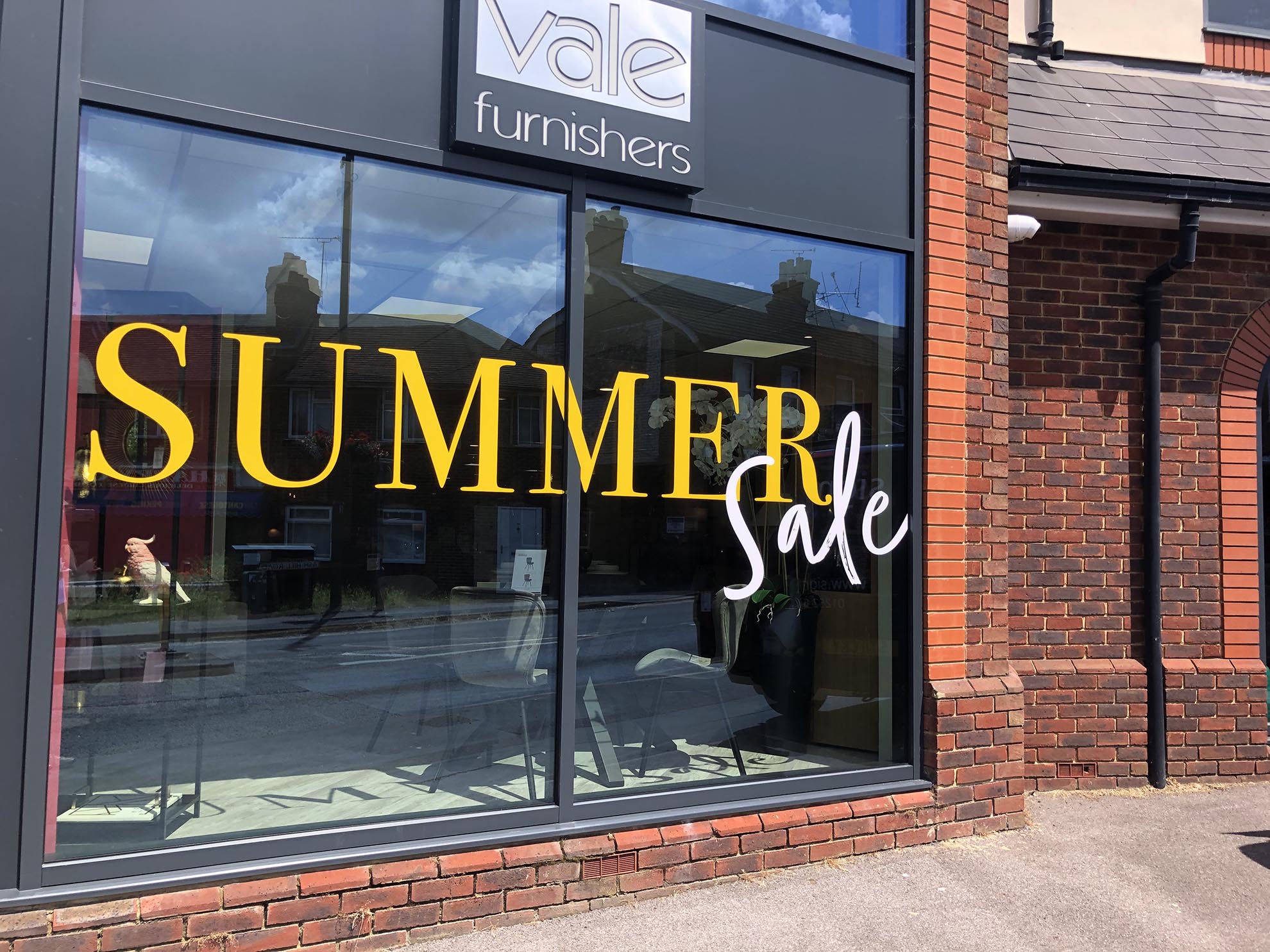 For the retail element, we created and installed custom vinyl window decals at their showrooms. These featured a combination of brand messaging, seasonal promotions, and decorative elements that reflected the style and tone of the Vale Furnishings brand. The decals were designed to enhance the frontage without obstructing visibility, drawing attention to the store while remaining clean and sophisticated. Applied with precision to large-format glass panels, they created a strong first impression for customers arriving at the showroom.
