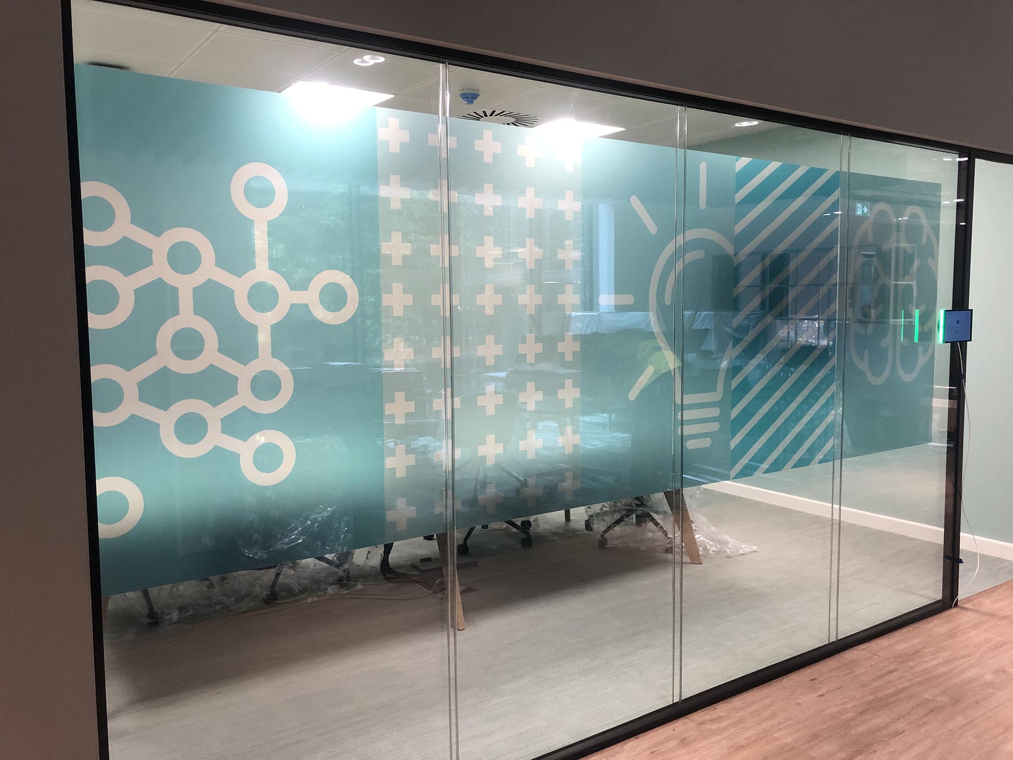 Glass wall graphics are a popular choice for meeting rooms and collaborative spaces, offering a sleek, modern look while adding a level of privacy and subtle branding. We’ve designed and applied everything from frosted patterns and logo etching to full-colour prints, enhancing both the aesthetic and usability of glazed partitions.